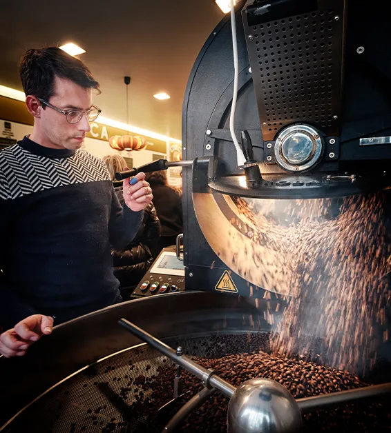 ‘Onze boetiek biedt meer dan twintig verschillende koffiesoorten aan, zowel ter plaatse als online. Je vindt er bijzondere koffies met unieke aroma’s, waaronder zeldzame en gelimiteerde variëteiten zoals Jamaica Blue Mountain, Bourbon Pointu van Réunion en Hawaii Kona — allemaal een traktatie voor de smaakpapillen,’ vertelt Harold. ‘De kracht van onze boetieks is dat we twee functies combineren: klanten kunnen niet alleen koffie kopen, maar ook proeven met persoonlijke begeleiding en deskundig advies. We branden onze eigen koffiesoorten zichtbaar voor onze klanten, in onze winkel aan de Rue Marché aux Poulets 49. Zo delen we onze kennis met volledige openheid.’